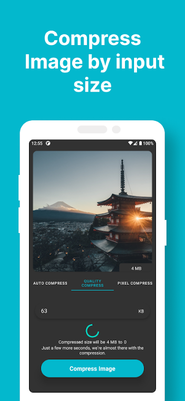 Görüntü boyutunu kb cinsinden küçültün veya fotoğrafları hızla sıkıştırın, uygulamamız size yardımcı olur.