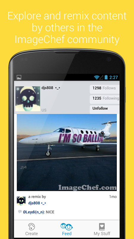 With integration to the ImageChef.com community web site, you can connect to friends on ImageChef and see their posts in a shared feed.