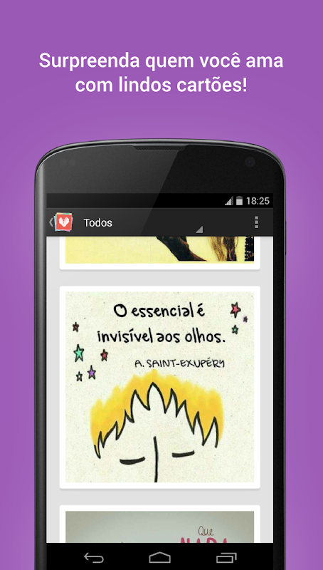 ✪ Surpreenda quem você ama com lindos cartões virtuais! Basta escolher entre as dezenas de imagens com mensagens disponíveis e compartilhar em seu chat preferido (Facebook, WhatsApp, Viber e outros).