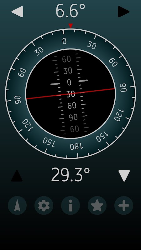 Eğimölçer, mobil cihazın sensörlerinden elde edilen verilerin ikili, analog ve dijital gösterimini sunan çok basit ama doğru bir eğim ölçüm aracıdır. Bir yüzeyin veya düzlemin eğimini ölçmek için tek yapmanız gereken telefonunuzu veya tabletinizi yüzeyle hizalamaktır. Cihaz tamamen yatay konumdaysa, uygulamamız normalde X ve ilgili Y ekseni etrafındaki dönme ve eğim için sıfırı (0,0°) gösterecektir. Tek bir ondalık basamakla ölçümün doğruluğu derecenin onda biridir (0,1°). Yatay bir yüzey için okumalar sıfır değilse basit bir Kalibrasyon prosedürü kullanılarak otomatik olarak ayarlanabilirler. Üstelik uygulamamız, gerçek kuzey yönünü ve azimut ve pusula içerir. >sapma. Kadranların herhangi bir yerine dokunduğunuzda, diğer şeylerin yanı sıra, ölçülen açıların mevcut değerlerini kaydetmenize olanak tanıyan ekstra bir menü görüntülenecektir.