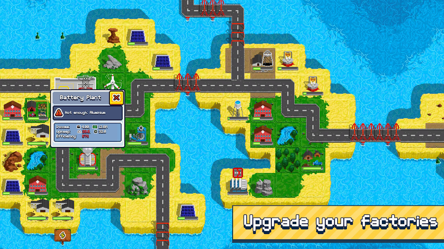 Become rich as you build the best production and assembly line ever in the industrial city building game! The plan is simple: Mine resources and invent new technologies. Start with the Wind Turbine and create energy. Use energy to get water. Use Water to grow food. The process is almost endless, get advanced machines to craft and create more complex resources.