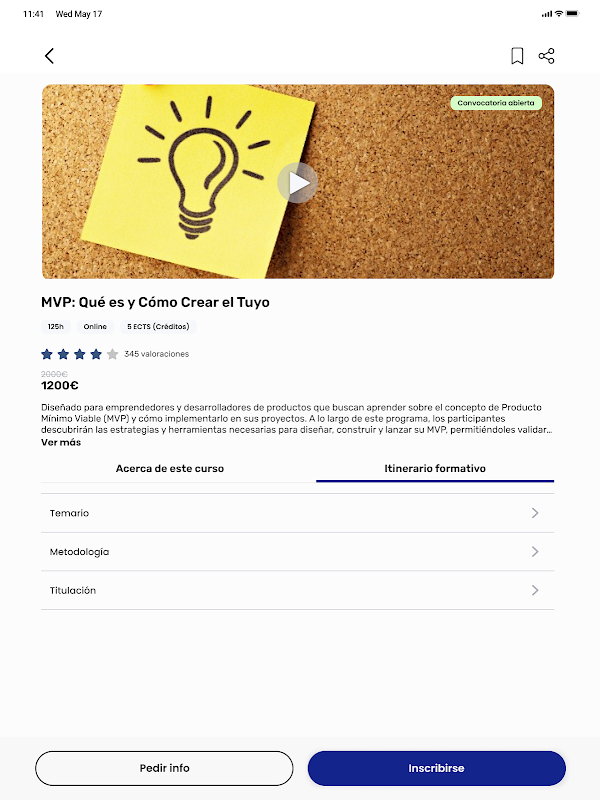 INEAF uygulamasını indirerek eğitim teklifimize göz atmaya başlamak ve eğitim ihtiyaçlarınıza uygun kursu veya yüksek lisans derecesini seçmek için kaydolmanız yeterlidir. Piyasada geniş deneyime sahip bir işletme okulundan size sağladığımız tüm bilgi ve becerilere bu kadar kolay erişebilirsiniz.