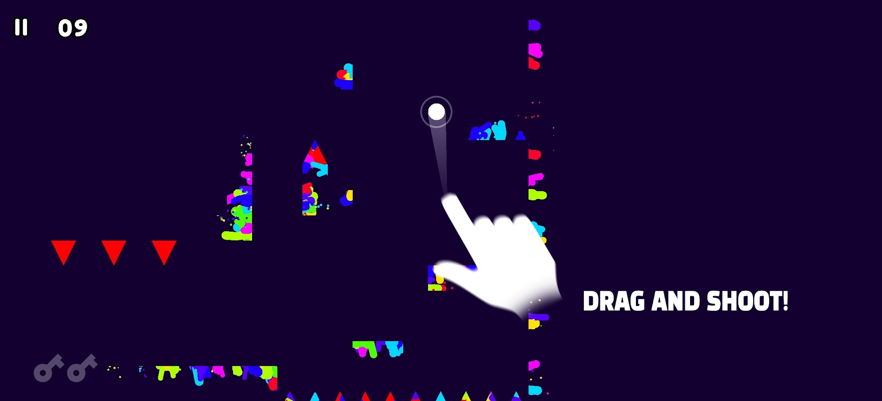 When game started everthing is unvisible. Your mission is to uncover your surroundings using colorful paint and prevent traps! The object of each level is to reach the goal portal by keys, trapdoors and colorful splashes. Ink splash is a fast paced platformer action game.