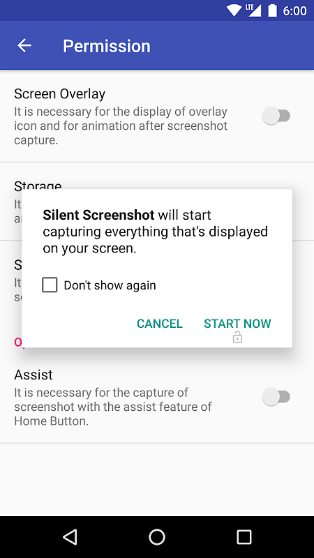 ・START NOW button(From Android 6.0 to 7.1)