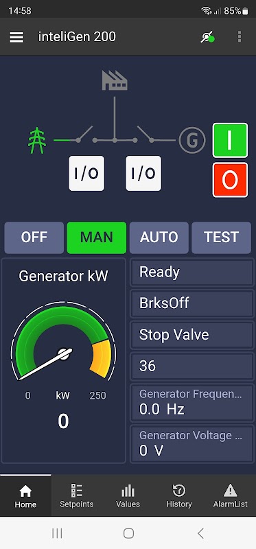 ComAp jeneratör kontrolörlerinin mobil cihaz üzerinden kolayca izlenmesini ve devreye alınmasını sağlayan mobil uygulama. Uygulamayı kullanarak belirli bir cihaz için mevcut tüm değerleri görebilir, geçmişi inceleyebilir ve alarmları onaylayabilirsiniz. Gerekirse yapılandırma dosyalarını bir denetleyiciye indirme veya yükleme olasılığı da vardır.