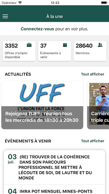 Bu uygulama Paris, Nancy & Aziz Etienne Maden mezunları, mezunlar Intermines ağı için tasarlanmıştır.
