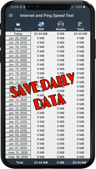 Internet and Ping Speed Test – Daily Usage For Android displays Speed In Notification-bar and keeps track on daily usage. It Creates Monthly Billing Cycle.To Internet Speed Meter The Use Of Internet And Wi-Fi Daily-used Data Report And Show Date In Right-side.Internet Speed Meter makes it easy to test your internet speed. It’s easy, fast and accurate and the test results are presented in a user-friendly way with icons explaining what the internet speed can be used for.