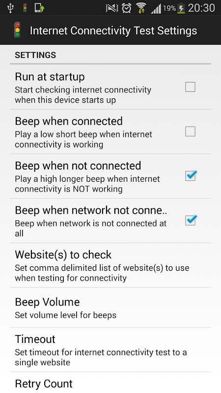 - Wifi ağları, hücresel ağlar ya da her ikisini test edebilme. tamamen internet bağlantısı kesildiğinde Seçenek bildirmek için.