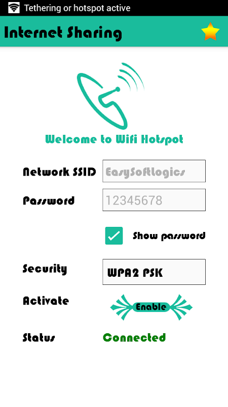 Now a days internet play an important role in our lives. Internet sharing app consider important apps. Many applications gives choices to share internet via USB , share internet via Bluetooth , share internet via WiFi but this app have only option which is share 3g , 4g internet with mobile hotspot. Internet Sharing WiFi hotspot is a free WiFi app for sharing internet. Internet Sharing WiFi Hotspot use for mobile internet connect to PC. This app share