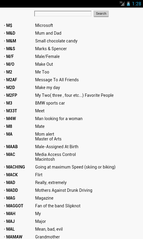 Bu uygulama sık sık arama, alfabetik düzenlenmiş her kelime için arama düğmesi içerir.
