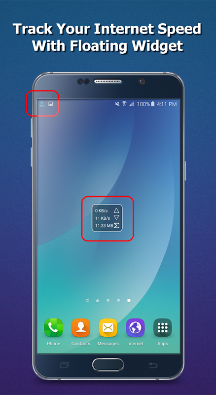 - 2016 İnternet Hız Ölçer gösteren gerçek zamanlı Internet hızı Durum çubuğu ve Bildirim çubuğunda Internet bağlantılarının