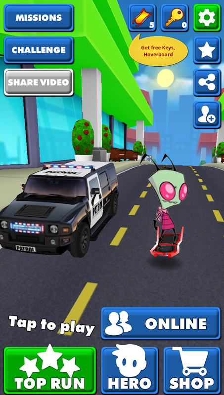 Attack the city with a horde of Invader Zim. Change passers-by into zombies to get the biggest horde. Eat your friends, and defy them in a crazy race by destroying everything in your path.