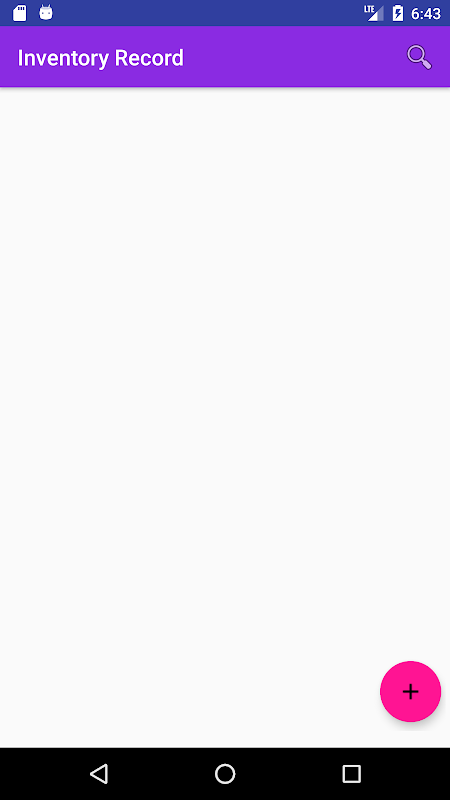 App allows to save record of inventory items, in scrollable list format. Records can be added by pressing the plus button, on the bottom right hand corner. Addition of new items will accept any text characters, while item quantity can be entered only in number format. Saved items list can be edited or deleted, by clicking on corresponding icon, in front of a particular record.