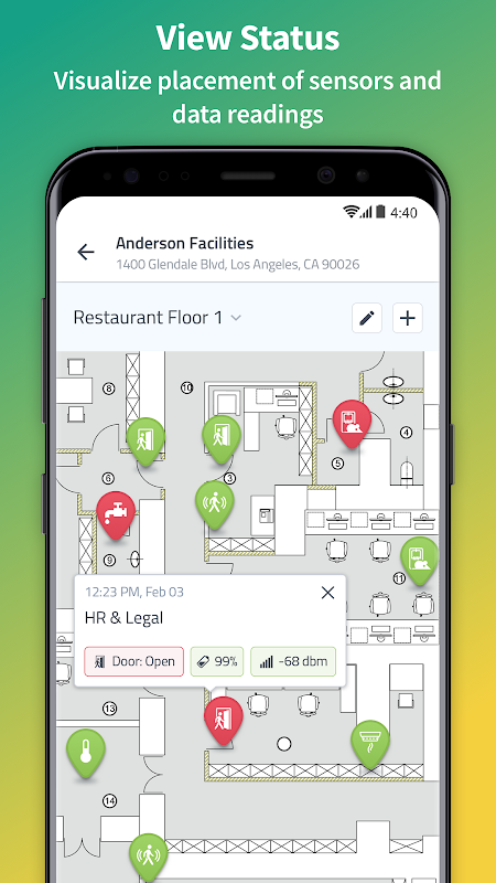• Easily visualize sensors, their readings, and their location to quickly identify issues.