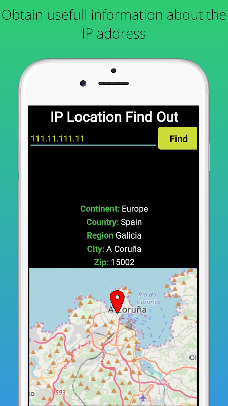 Herhangi bir IP adresini izlemek için kullanabileceğiniz ve size ZIP kodu ve bir kıta, ülke, bölge ve şehir gibi daha yararlı bilgiler içeren bir haritadaki konumunu veren kullanışlı bir uygulama.