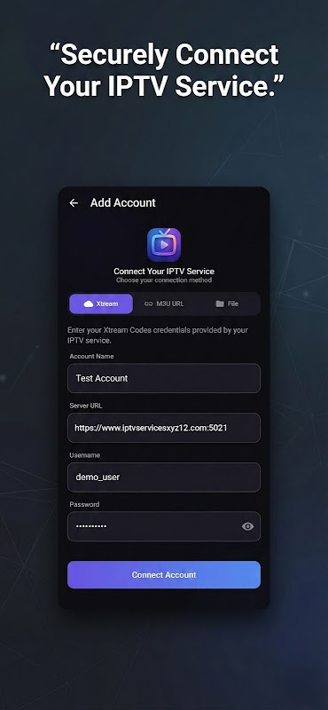 Not: Uygulama herhangi bir medya içeriği sağlamaz veya içermez. Kullanıcılar kendi yasal olarak edindikleri oynatma listelerini veya sağlayıcı kimlik bilgilerini eklemelidir.