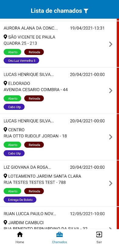 Listas de acompanhamentos de chamados