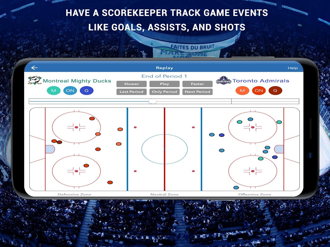 iTrackHockey, bir hokey oyunu sırasında telefonlarınızda veya tabletlerinizde kolay ekran "dokunmaları" kaydederek gerekli tüm bilgileri toplar. iTrackHockey, veri toplama sürecini basitleştirerek ve görsel ve istatistiksel sonuçlar sunarak herkesin oyun skorları bilgilerine ve oyuncu istatistiklerine kolayca erişme yeteneğini geliştirebilir.