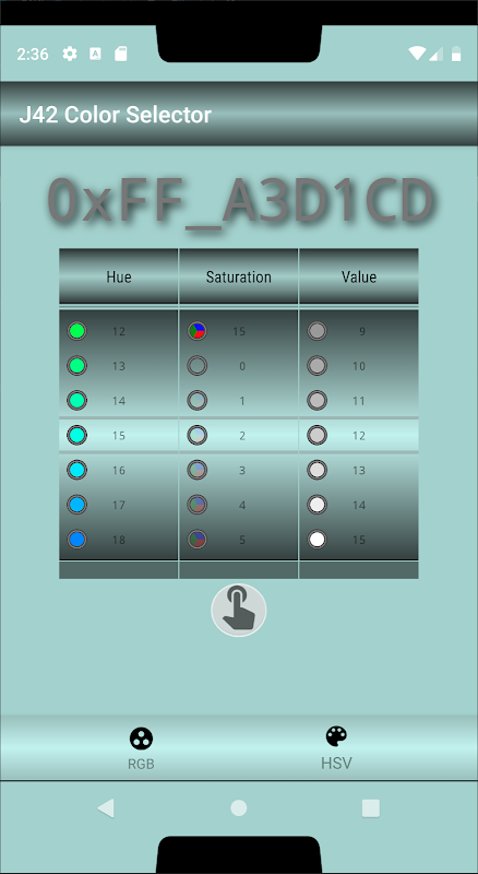 The color Alpha-Red-Green-Blue hex code is displayed at the top of the screen. Format is 0xAA_RRGGBB ( AA=Alpha, RR=Red, GG=Green, BB=Blue ).