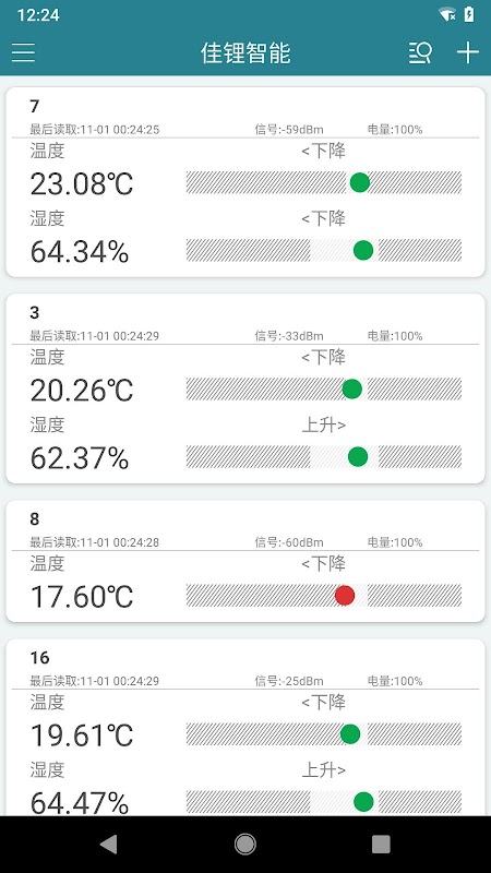 佳锂智能APP是一款用于管理佳锂温湿度计的软件,可实时查看附近的温湿度计数据,显示温湿度分布区间、导出温湿度数据等功能。