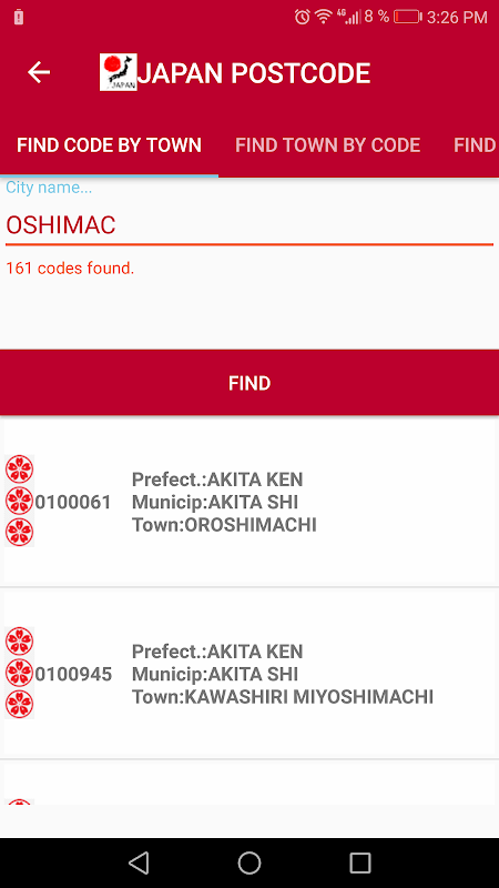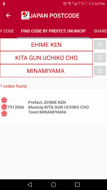 Japonya'da ilgili yeri (İl, Belediye, kasaba) bulmak için posta kodu arayın