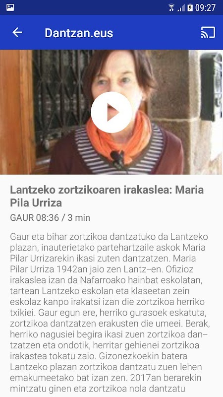 Bask görsel-işitsel çoklu video kanalları, kamu televizyon, ETB, Onbir Televizyon, süre dans, Gaztezulo ve diğer medya yanı sıra Bask genç video sanatçıları. Mobil video izleme ve Chromecast'in cihazı (39 Euro trastoa olan) Eğer varsa, hem de televizyonda.