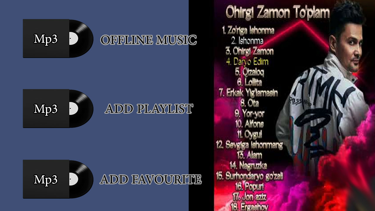 Jasur Umirov'dan çevrimdışı olarak çalınan şarkı koleksiyonu.