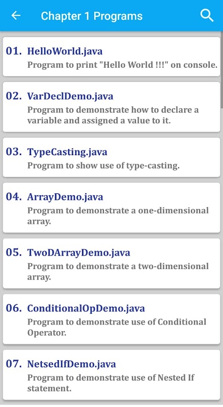Bu Uygulama, açıklama ve çıktı ile 150'den fazla Core JAVA programı içerir.
