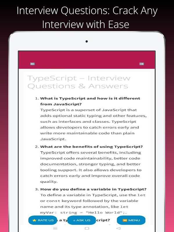 Java bilgisini kullanarak TypeScript'te uzmanlaşmak mı istiyorsunuz? Android uygulamamız, bu güçlü dili öğrenmek için 14 ayrıntılı konu, kod örnekleri, diyagramlar ve adım adım rehberlikle tamamlanan kapsamlı bir kılavuz sunar.