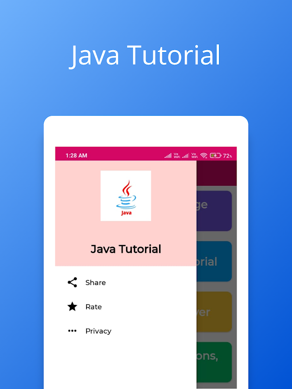 Bu java, android telefonunuzda java programlama Öğreticileri taşımanıza olanak tanır. Yaklaşık 100 Program içerir.