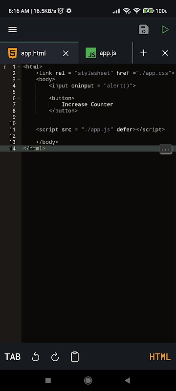 Code Intellisense gibi özelliklerle android telefonunuzdan JavaScript Kodunu çalıştırın