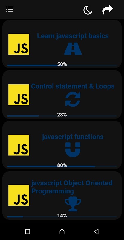 Bu uygulama, aşağıdaki temaları görüntüleyerek size JavaScript ile başlamanız için çok basit bir giriş sağlar: