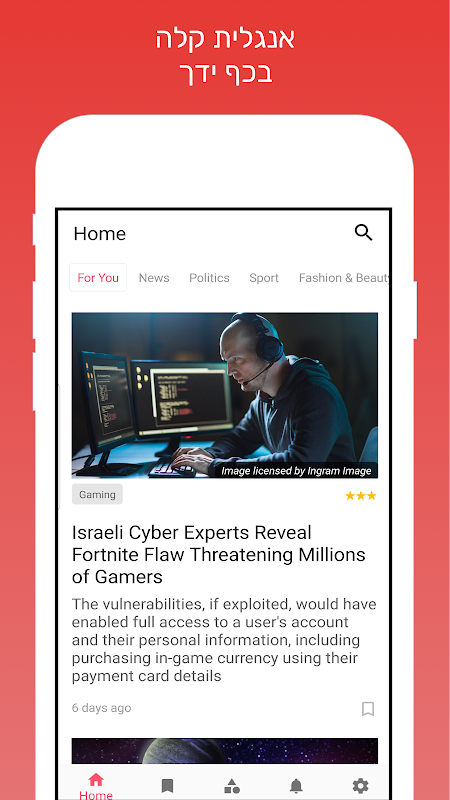 Buna ek olarak, her makalede, kırmızı renkle işaretlenmiş kelimeler işaretlenir ve bir kelimenin üzerine tıklanması makalenin bağlamına ve cümledeki rolüne göre İbranice'ye çevirisini gösterir. Okumayı bitirdiğinizde kendinizi test edebilir ve yeni kelimeleri hatırlayıp hatırlamadığınızı görebilirsiniz. Uygulama zaten okuduğunuz makaleleri tanır ve hatırlar ve her biri bir Soru-Cevap oyunu ile öğrenilen yeni kelime üzerinde test eder.