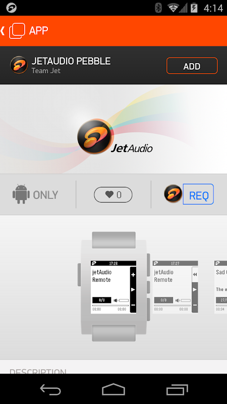 Pebble için JetAudio Android müzik çalar için JetAudio kontrol Pebble SmartWatch için bir müzik uygulaması.