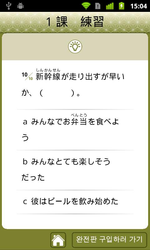 「리스트」:문법 형식을 오십음도 순, 과 순, 즐겨찾기 등으로 바꾸어 가며 학습하고 싶은 문법 형식을 고르실 수 있습니다.