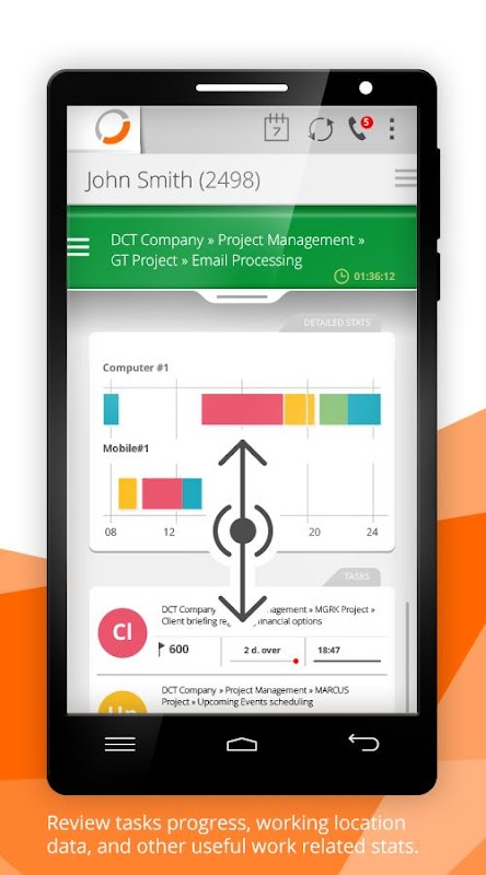 Document work related calls and mobile app usage as worktime. Call durations, field work and travel times can be automatically assigned to tasks and clients.