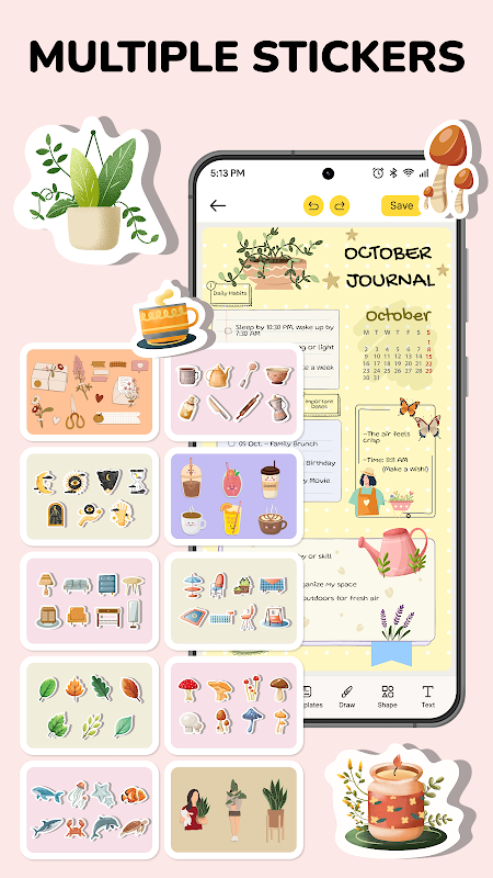 Şablon ve çıkartma koleksiyonu: İster dijital bir not defterinin sadeliğini ister fiziksel bir defterin düzenli düzenini tercih edin, bu koleksiyon ihtiyacınız olanı sunar. 1000'den fazla sevimli çıkartma ve çeşitli konuları kapsayan 300'den fazla benzersiz şablondan oluşan özenle seçilmiş bir kütüphane içerir. İster dijital not defterinize hızlı notlar alın, ister favori defterinize ve planlayıcınıza fikirlerinizi çizin, düşüncelerinizi ve tarzınızı benzersiz ve etkileyici bir şekilde yansıtın.