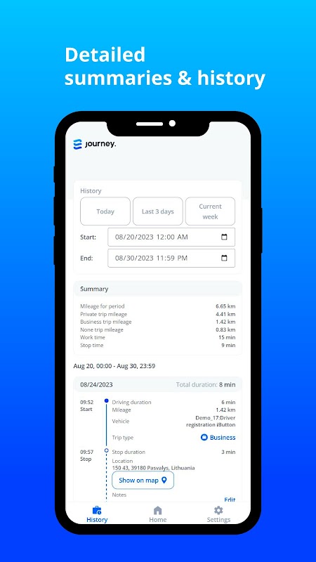 Zahmetsiz sürücü ataması. Artık iButton'lar, RFID kartları veya okuyucular gibi ek donanımlarla uğraşmanıza gerek yok. Journey Uygulaması ile sürücü atamak, telefonunuza birkaç dokunuş kadar kolaydır.