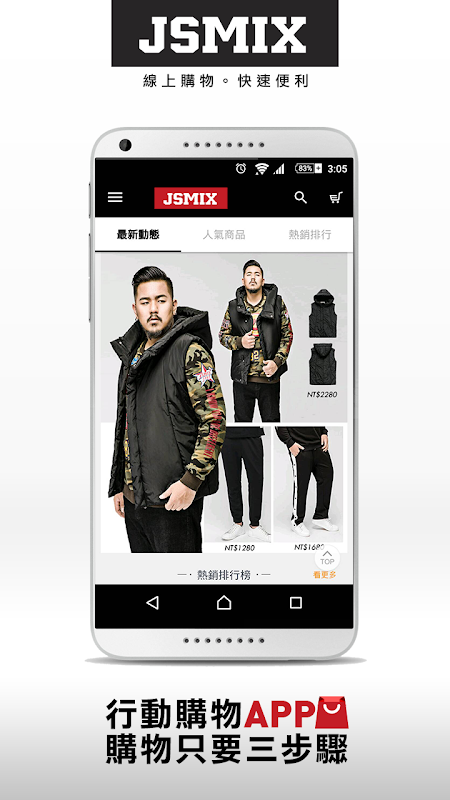 JSMIX大尺碼服飾推出行動購物APP囉!讓您也可享有一鍵購物的方便,只需三個步驟就可輕鬆完成購物,享有線上不定時推出優惠與折扣,立即掌握粉絲動態專頁。