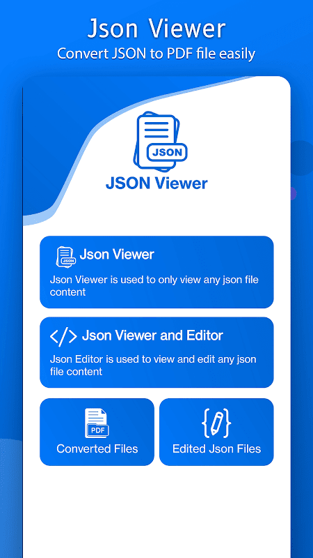 Json'dan pdf'ye dönüştürücü, json'u okuyabilmeniz için biçimlendirmenin hızlı ve kolay bir yolunu sağlar. Json dosya açıcı sayesinde, dönüştürülen tüm pdf dosyalarını da kolayca görüntüleyebilirsiniz. Her bir Pdf dosyasını bir PDF Görüntüleyicide açabilir. Json okuyucu sayesinde yalnızca dönüştürülmüş pdf dosyalarını görüntüleyemez, aynı zamanda herhangi bir PDF dosyasını cihaz deposundan seçebilir ve bir PDF görüntüleyicide görüntüleyebilir.