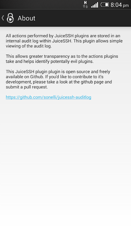 Eklenti denetim günlüğünü görüntüleme için bir JuiceSSH eklentisi.