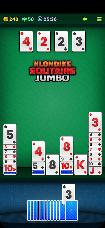Klondike Solitaire mobil cihazlar için alt odaklı ve tek elle oynanabilir