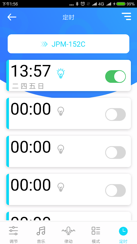2. zamanlama için Atlama Aydınlatma Bluetooth ışığı kontrol edebilirsiniz.