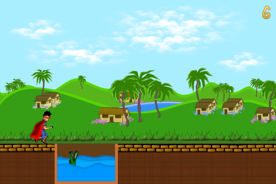 As you jump over pools, you gain items that make you look cool... As a superhero!