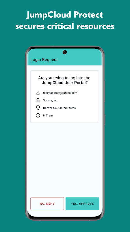 Globee Siber Güvenlik Ödülü'nü gururla kazanan JumpCloud Protect® mobil uygulamasıyla iş kaynaklarınızda basit ve güvenli bir şekilde oturum açın. JumpCloud Protect, kullanıcı doğrulamasını sağlayan çok faktörlü kimlik doğrulamayı (MFA) etkinleştirir.