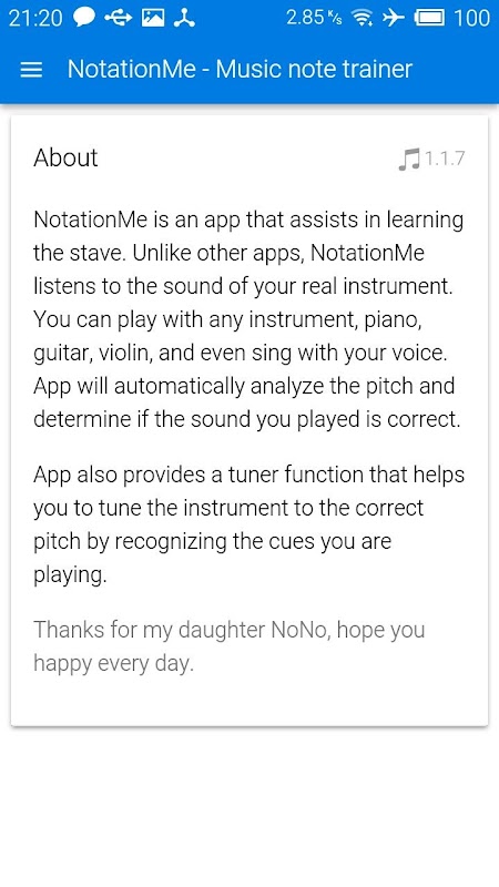 Just Notation is an app that assists in learning the stave. Unlike other apps, Just Notation listens to the sound of your real instrument. You can play with any instrument, piano, guitar, violin, and even sing with your voice. App will automatically analyze the pitch and determine if the sound you played is correct.