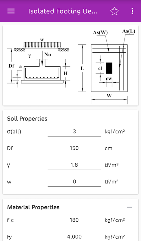 Mühendislik araçları bölümündeki hesaplama ve tasarım, Suriye Arap kodunun esas yöntemine göre yapılır.