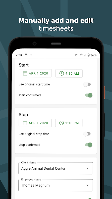 Çalışanlar sadece telefonlarını iş sahalarına taşırlar. Etkinleştirilirse, Çalışanlar konuma girip çıktıklarında KeepsApp otomatik olarak bir zaman çizelgesi kaydeder. Veya tercih edilirse çalışanlar zaman çizelgelerini manuel olarak girebilir.