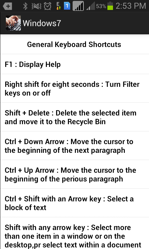 This app contains different operating systems shortcut keys.It is the easy way to access the