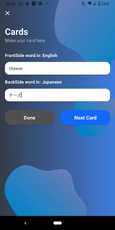 This is an app that is designed to help people learning a second language with memorizing vocabulary. This is done through flash cards where you can input words and have app read the word for you to hear the pronunciation. Currently this app is only available in English and the supported languages are: